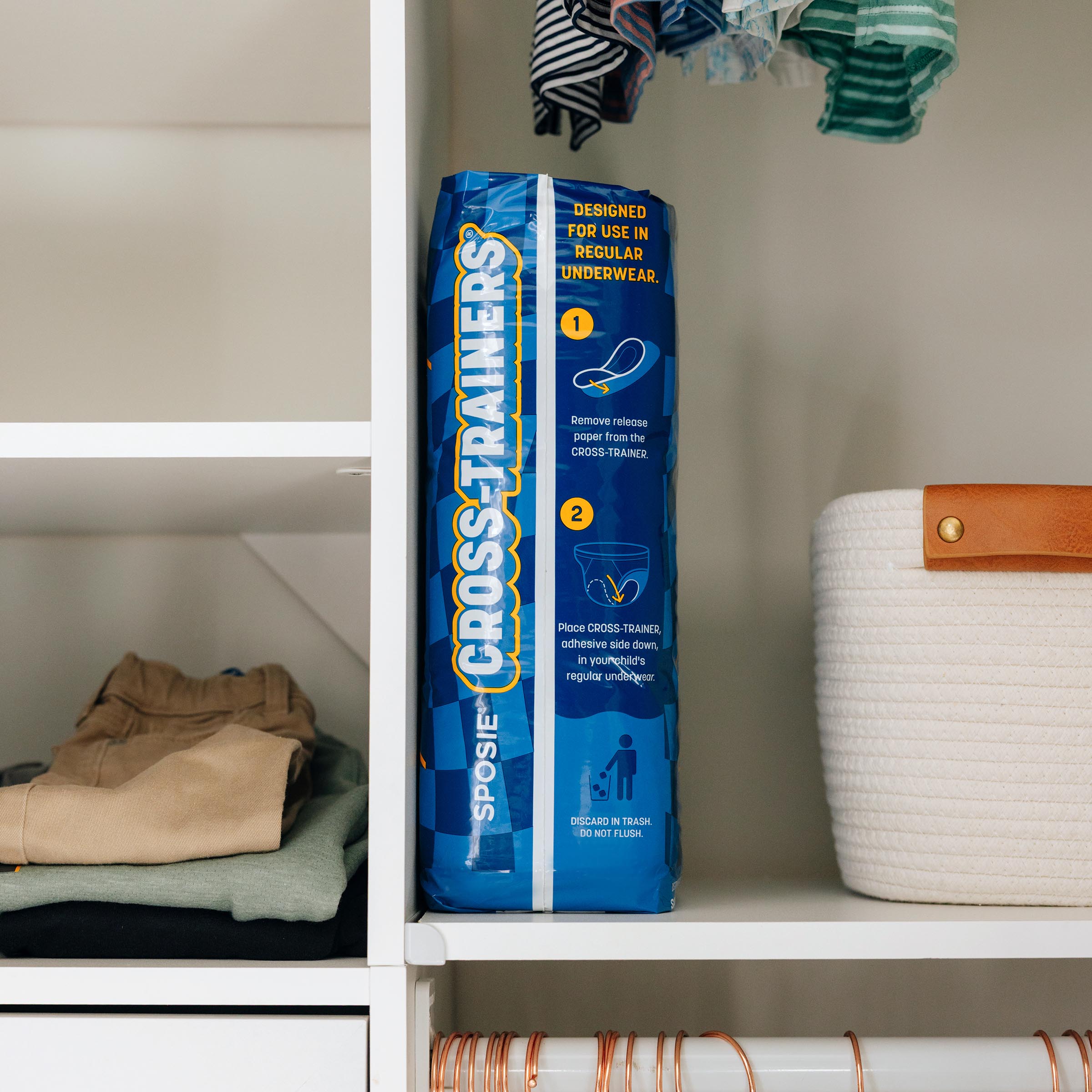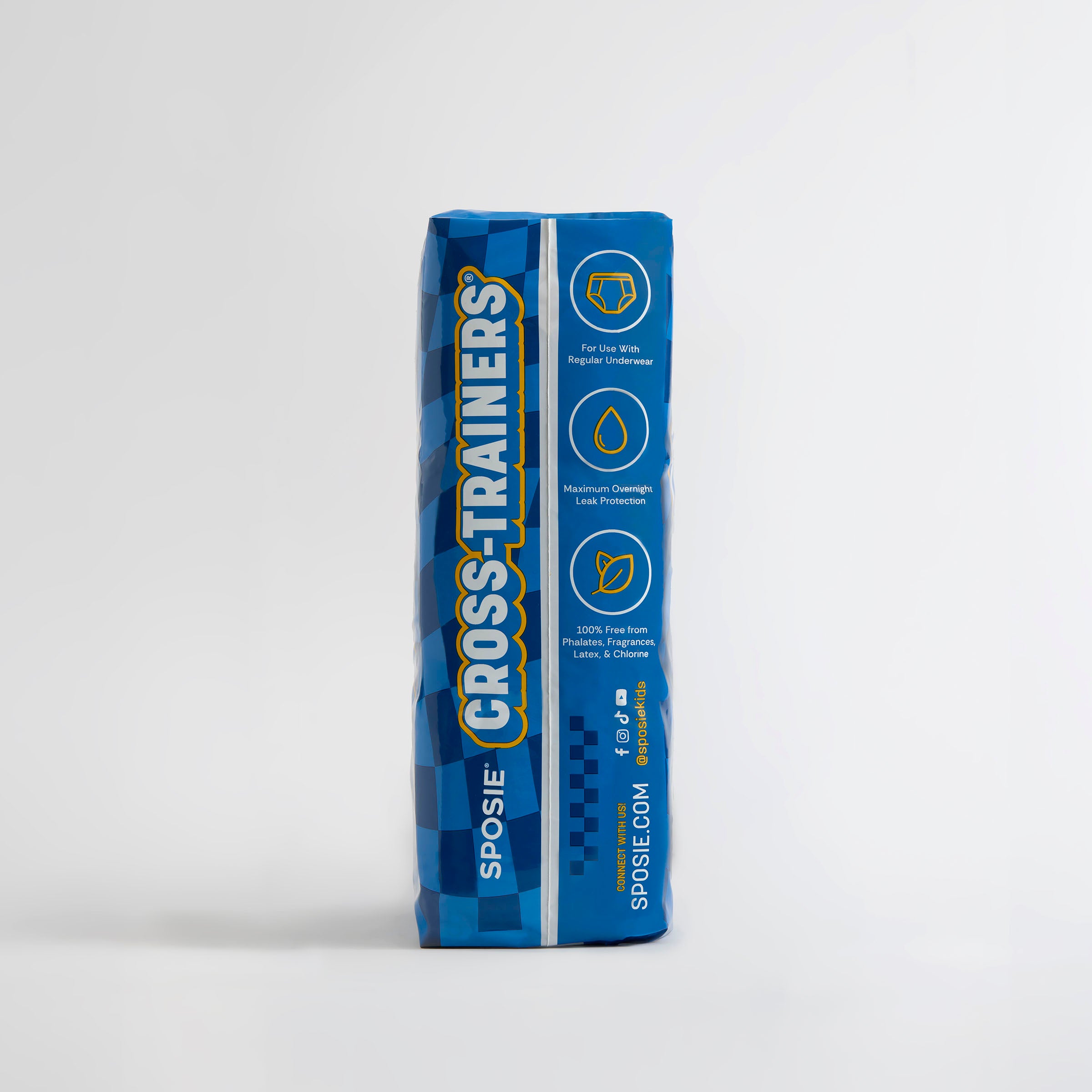 For years, potty training products have overlooked a critical step – the final step! Introducing Sposie Cross-Trainers. The first-to-market alternative to bulky, crinkly pull on style diapers by supporting children without the confusion and confidence set-backs. Designed to fit discreetly inside regular underwear, each absorbent Cross-Trainer pad helps protect against leaks, reduce nighttime accidents, and keep kids feeling dry and confident until morning. More than just a padded insert, Sposie Cross-Trainers help minimize laundry and frustration while promoting independence, better sleep, and long-term potty training success—for both kids and parents.